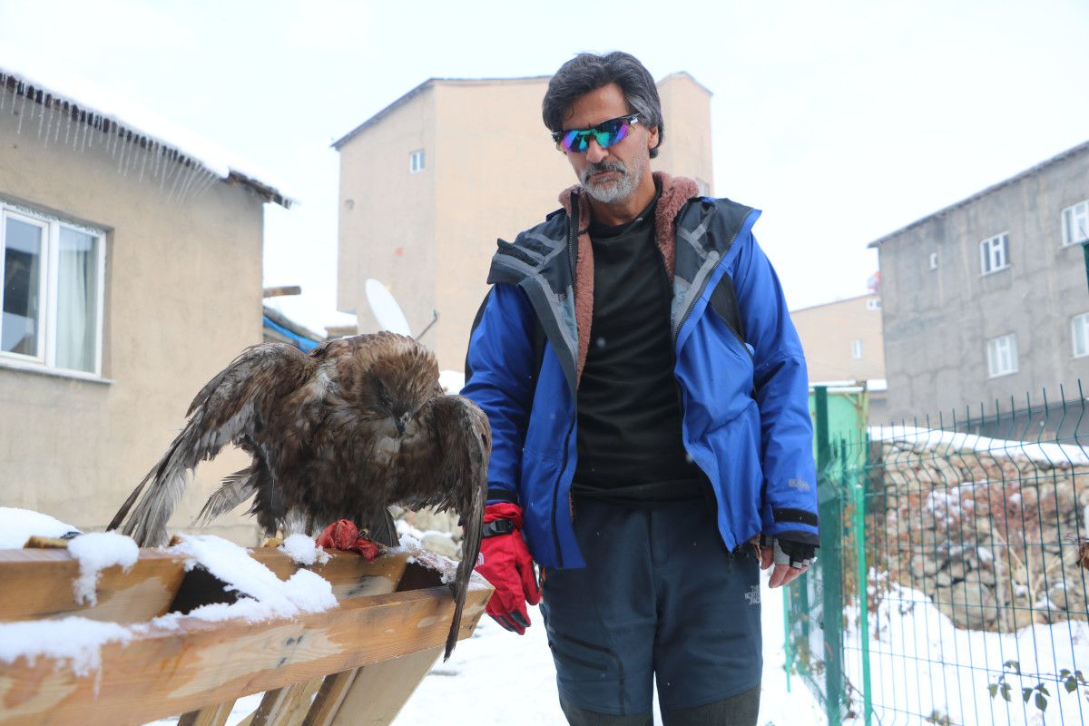 Hakkari’nin Yüksekova ilçesinde yaşayan İskender Kahraman, 2 yıl önce Yüksekova’nın Cilo Dağları’nda tur rehberliği yaptığı sırada yaralı bulduğu yavru kızıl şahini evine götürdü.