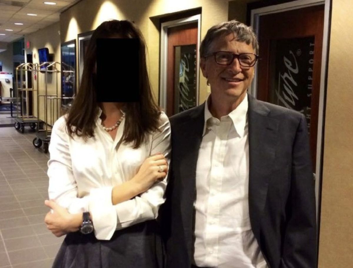 Fotoğrafta Bill Gates’in yüzü sansürlenmiş bir kadınla poz verdiği görüldü.