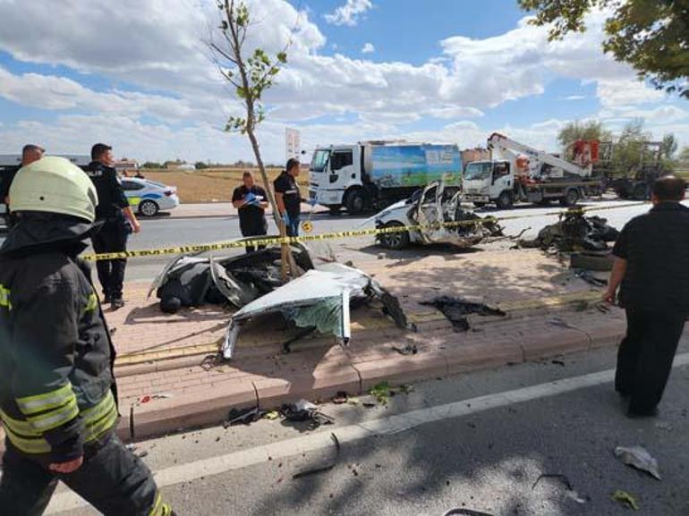 Külcü’nün cesedi de otopsi yapılmak üzere Konya Adli Tıp Kurumu’na götürüldü. Diğer yandan kaza, güvenlik kamerasına yansıdı. (DHA)