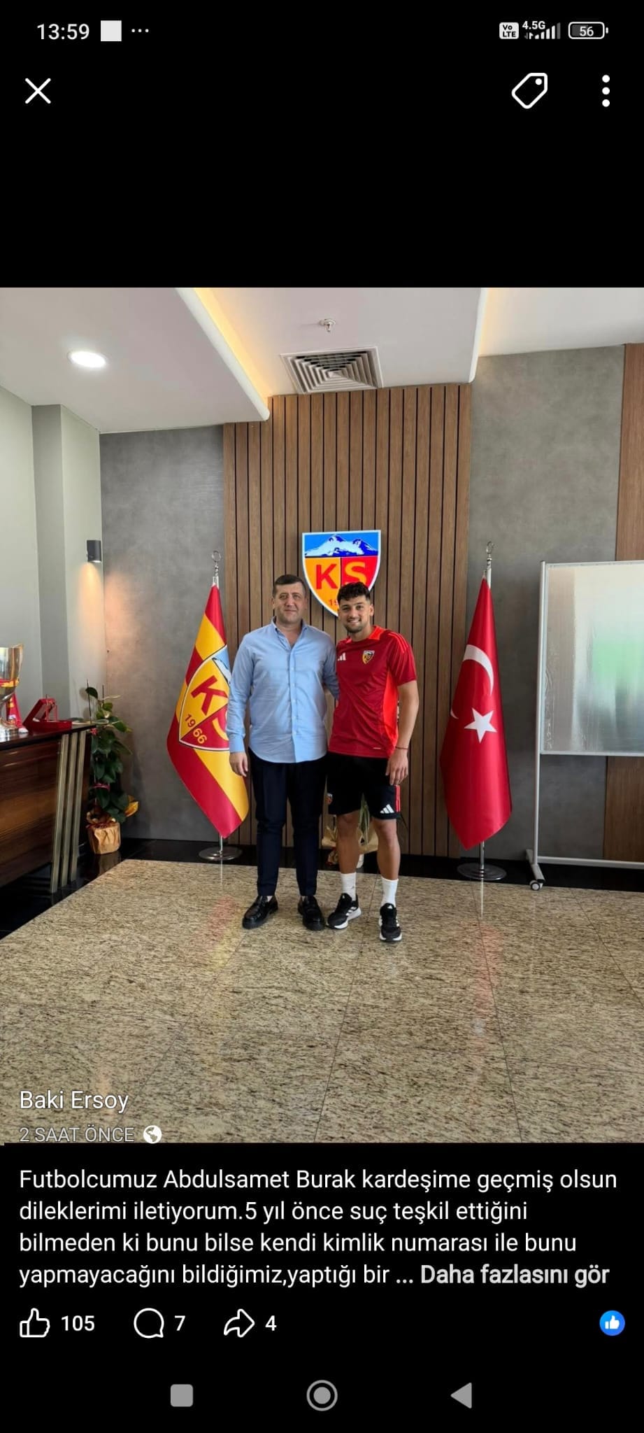 “Futbolcumuz Abdulsamet Burak kardeşime geçmiş olsun dileklerimi iletiyorum.5 yıl önce suç teşkil ettiğini bilmeden ki bunu bilse kendi kimlik numarası ile bunu yapmayacağını bildiğimiz, yaptığı bir hatadan dolayı yaşadığı bu elim olaydan dolayı da kendisine sahip çıkmamamız bizi tanıyan insanların tahmin edebileceği üzere mümkün değildir.