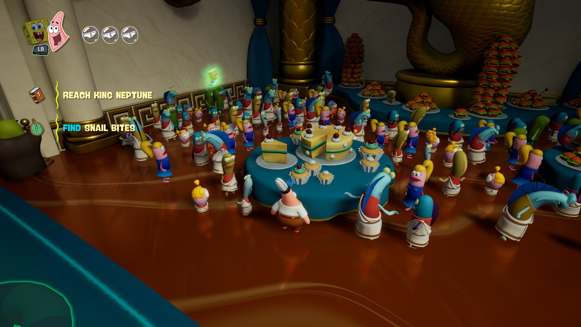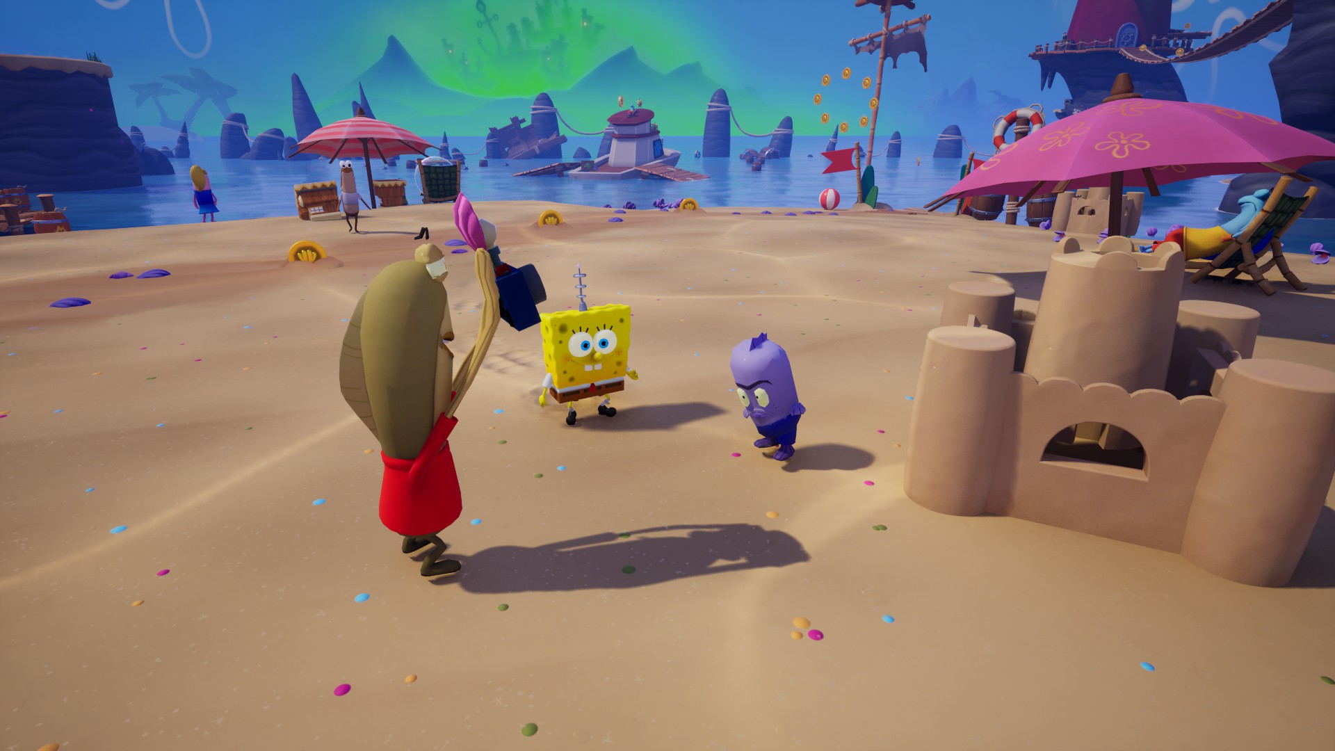 The Cosmic Shake de en çok şikayet ettiğim şeylerden biri çok fazla “Battle for Bikini Bottom” gibi olmasıydı. 2003’teki oyunun aynısını, farklı bir haritada oynuyormuşum gibi geliyordu, ki BFBB en sevdiğim SüngerBob platform oyunlarından biridir. Titans of the Tide’da da aynı şeyi yaşacağım diye çok korktum. Ama oyunu oynarken bir kere bile “öf” dediğimi hatırlamıyorum.