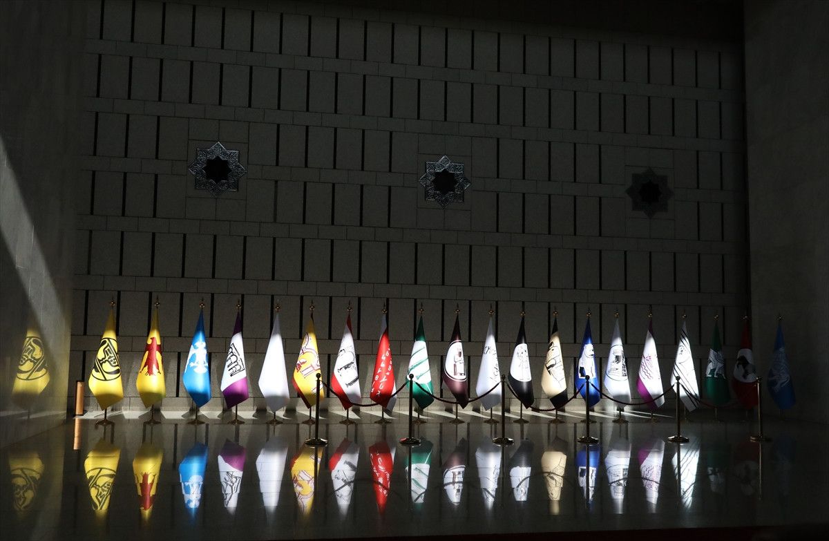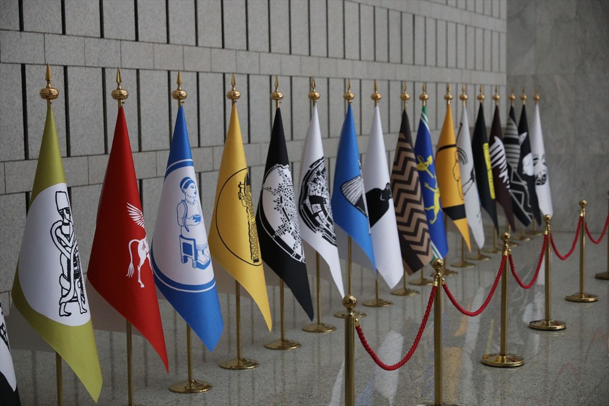Suriye topraklarında tarih boyunca varlık göstermiş medeniyetleri simgeleyen temsili bayraklar, Şam’daki Cumhurbaşkanlığı Halk Sarayı’nda düzenlenen ortak basın toplantısında sergilendi. Dışişleri Bakanı Hakan Fidan ile Suriye Dışişleri Bakanı Esad Hasan Şeybani’nin açıklama yaptığı salonda yer alan bayraklar, dikkat çekti.